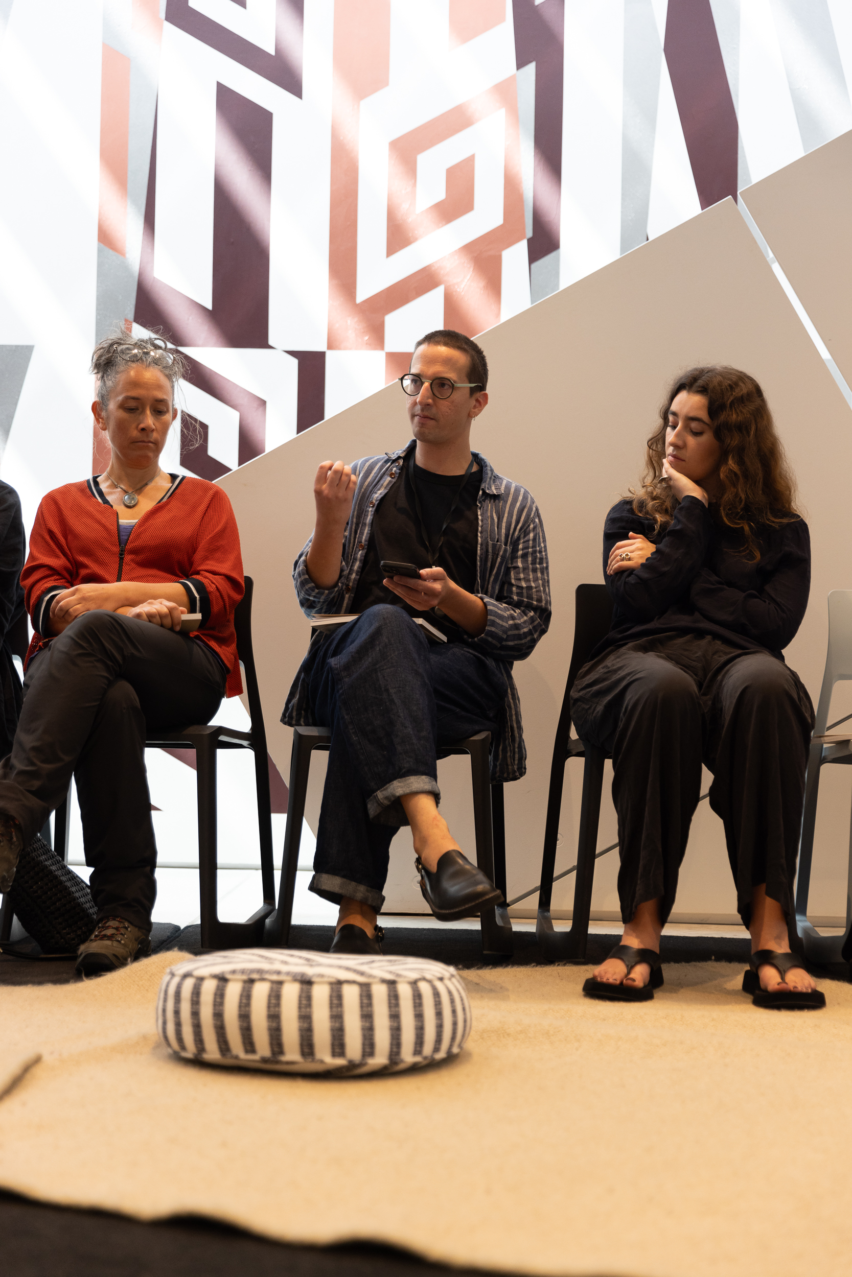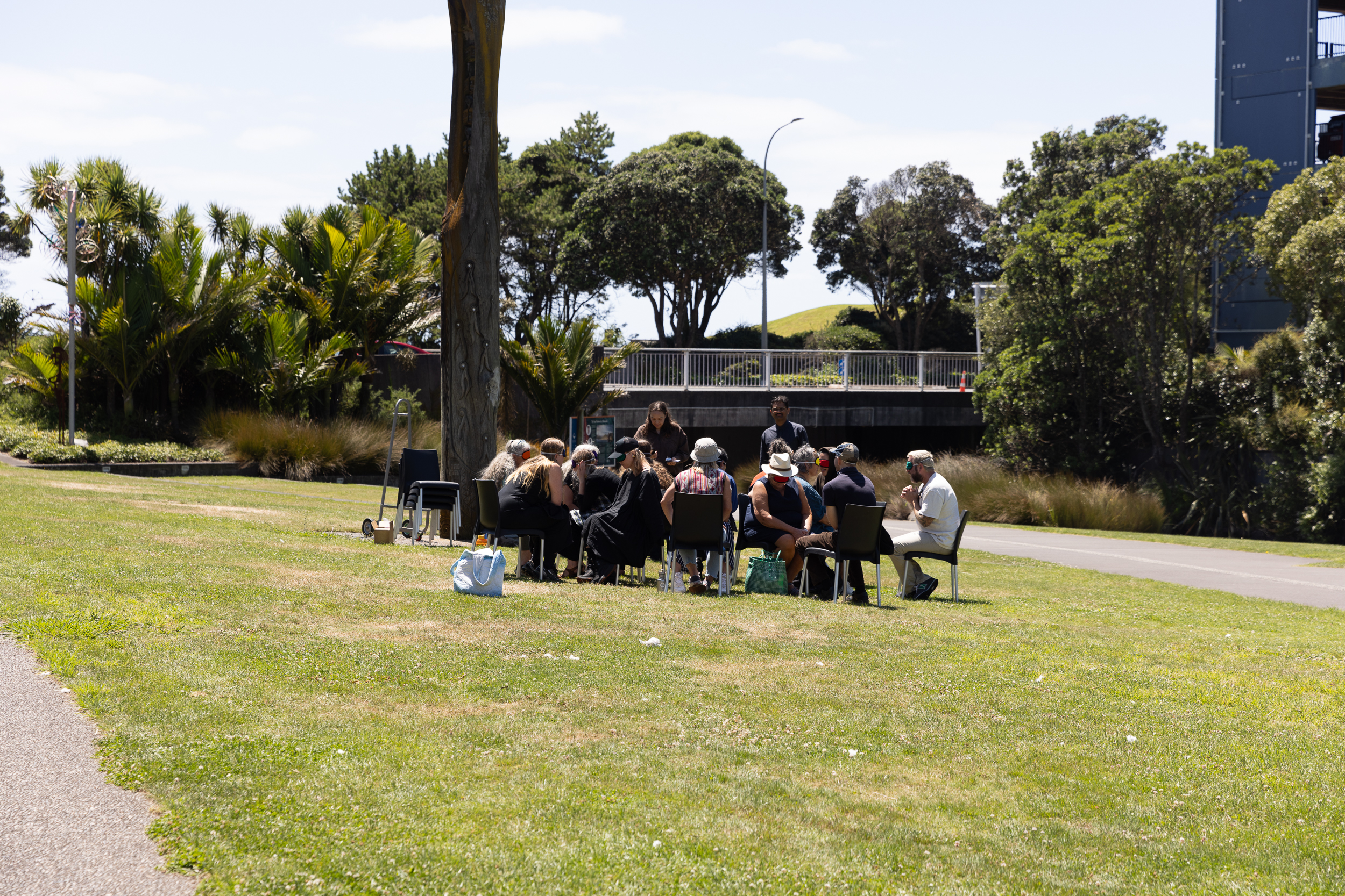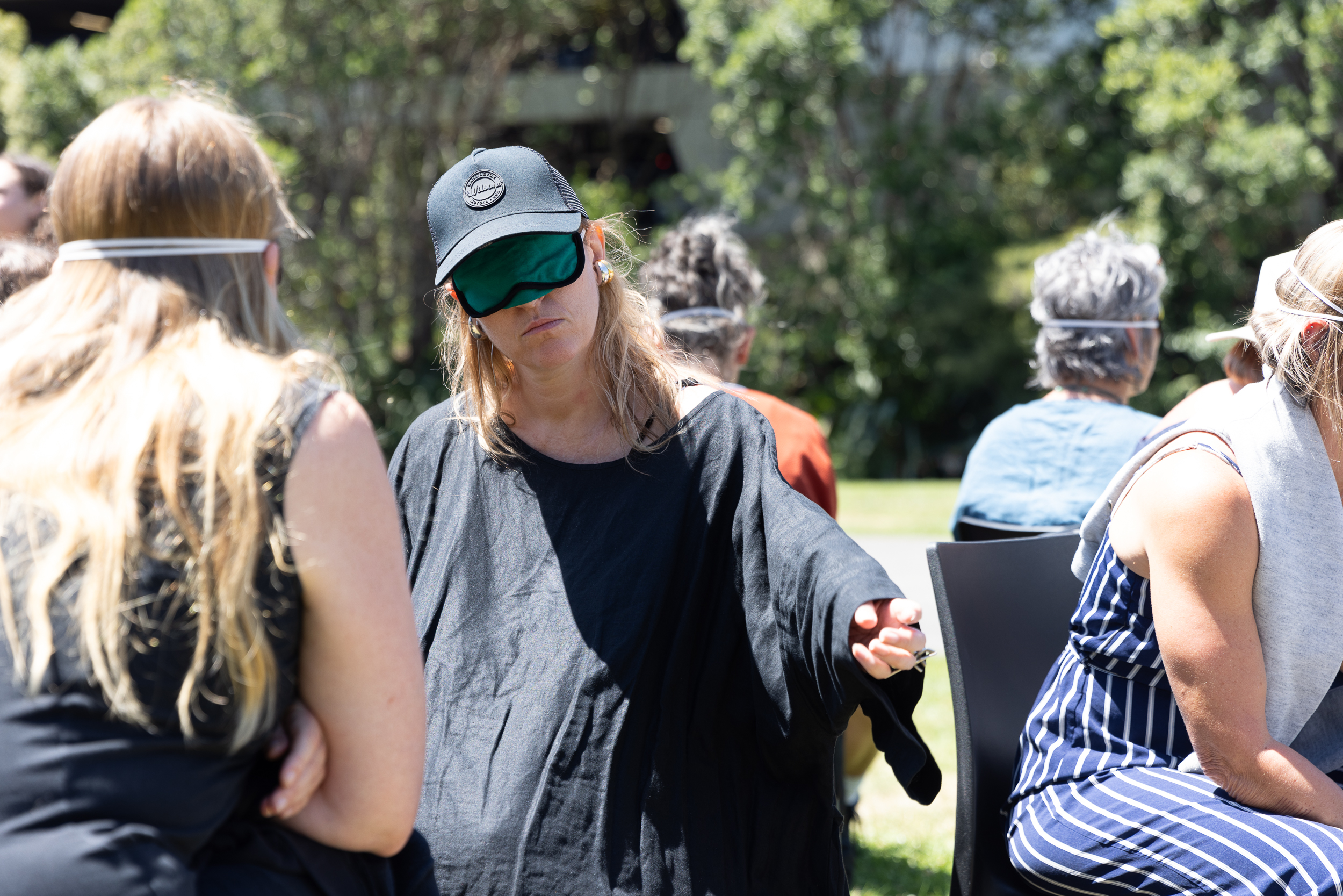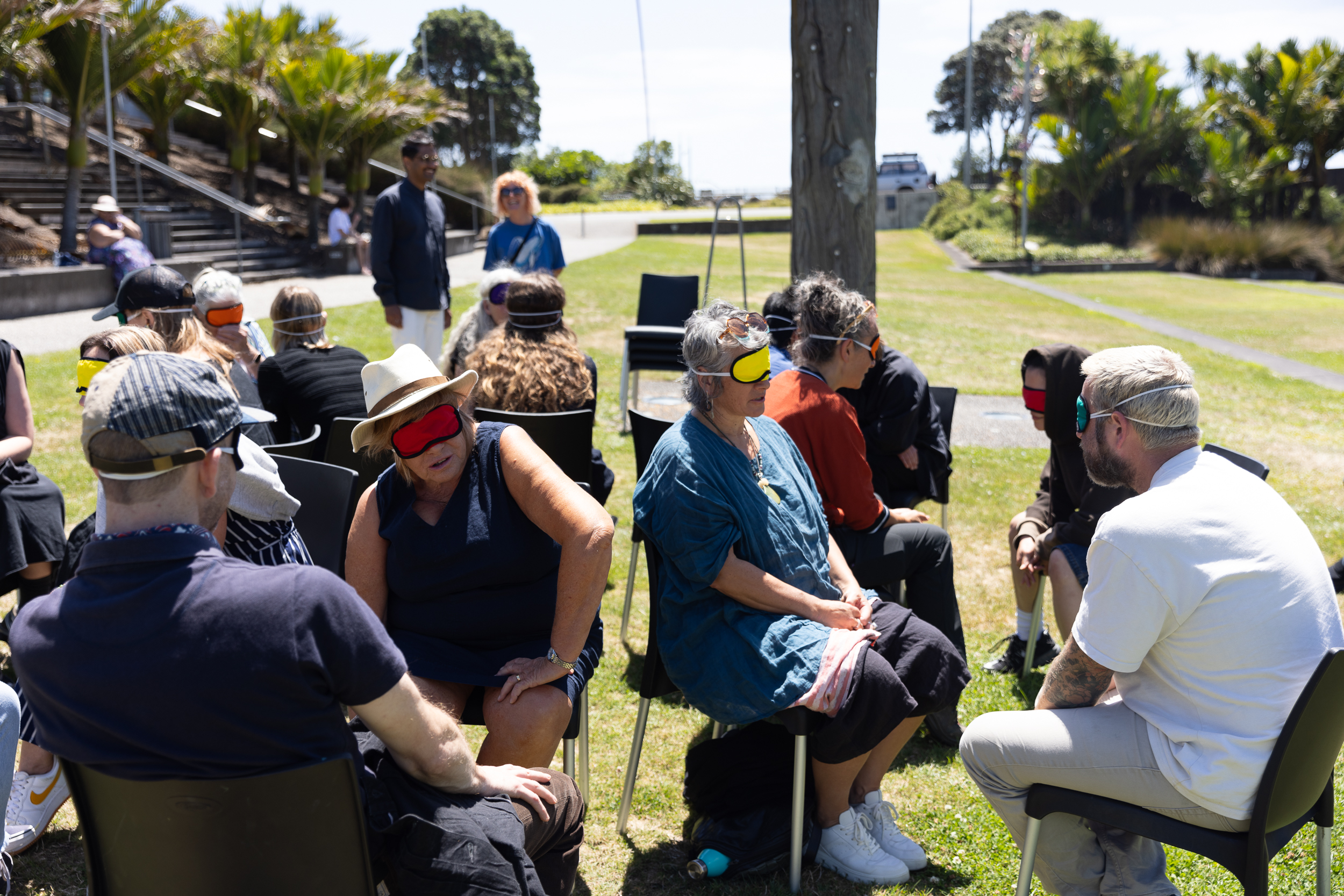 Artist and organiser Bea Gladding (Ngāti Porou, Ngā Puhi) led a workshop on Puke Ariki Landing, encouraging shared intimacy and vulnerability among a group of relative strangers. Through prompts, Gladding's workshop interrogated and sought to undo assumptions guiding art's infrastructures.