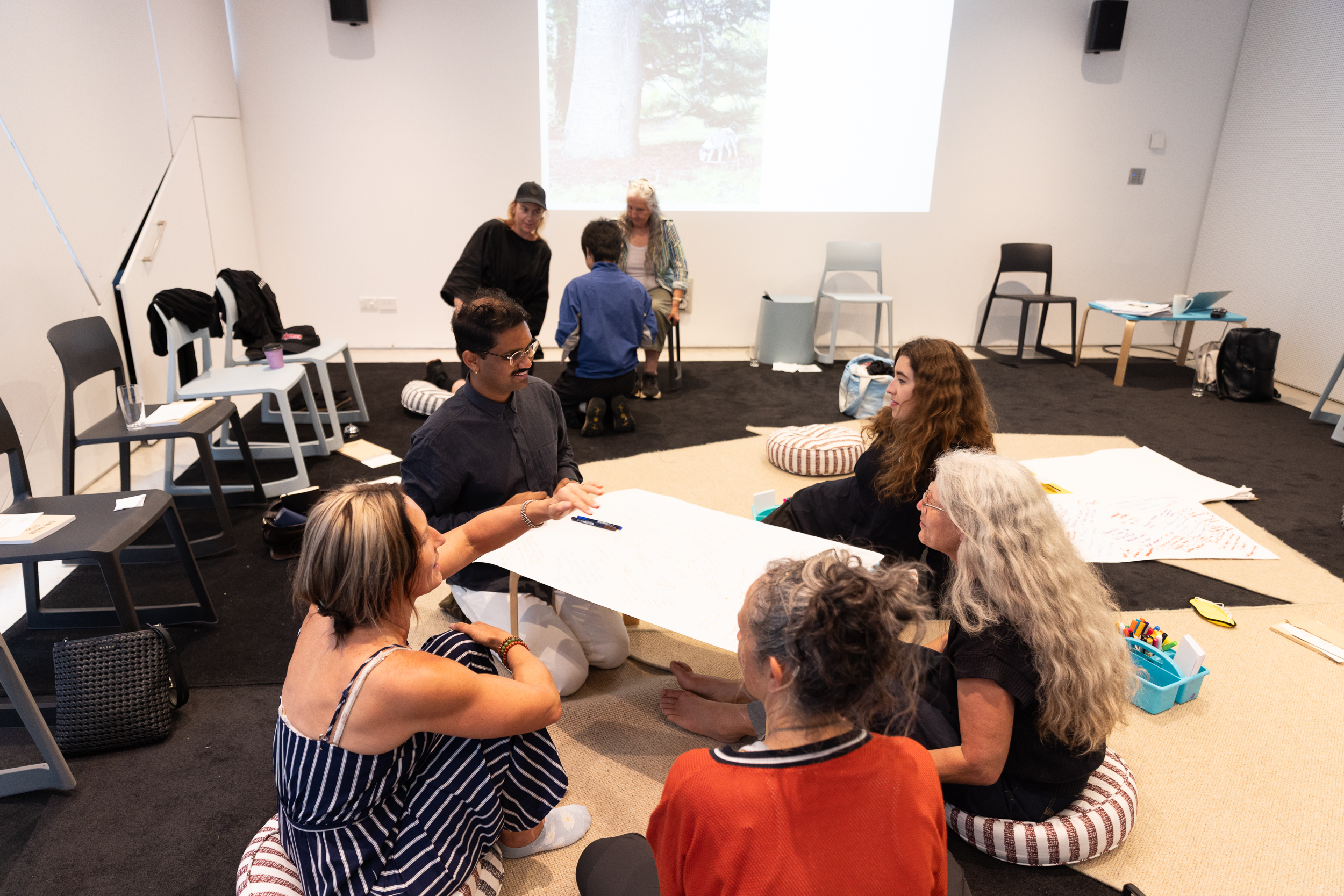 Bringing a perspective nurtured from a lifetime of activism within the intersection between arts practice and work for transformative systems change, Sue Bradford facilitated a participatory session aimed at bringing together the teams, ideas and imaginings sparked by our time together.