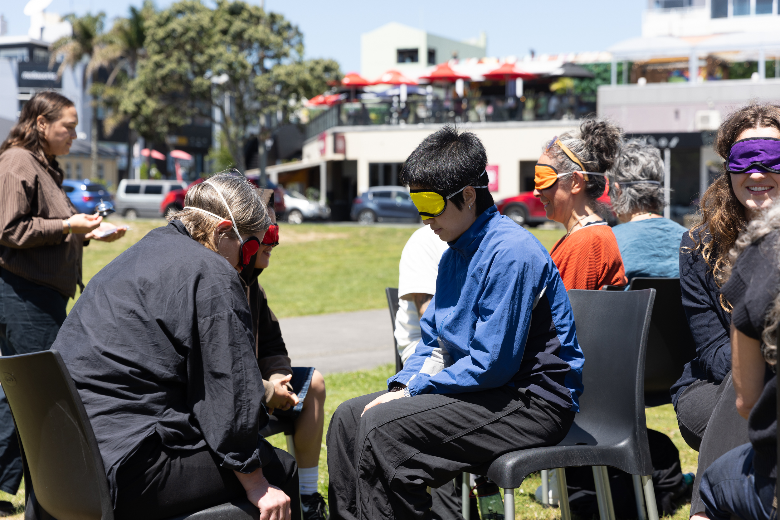 This performance furthered the artist’s interest in engaging with different communities and contexts through acts of unconditional trust. Over two days, the artist was present at different locations in Ngāmotu with his head covered, simply waiting for an encounter to happen. Passersby were invited to guide the artist in any direction they wish.